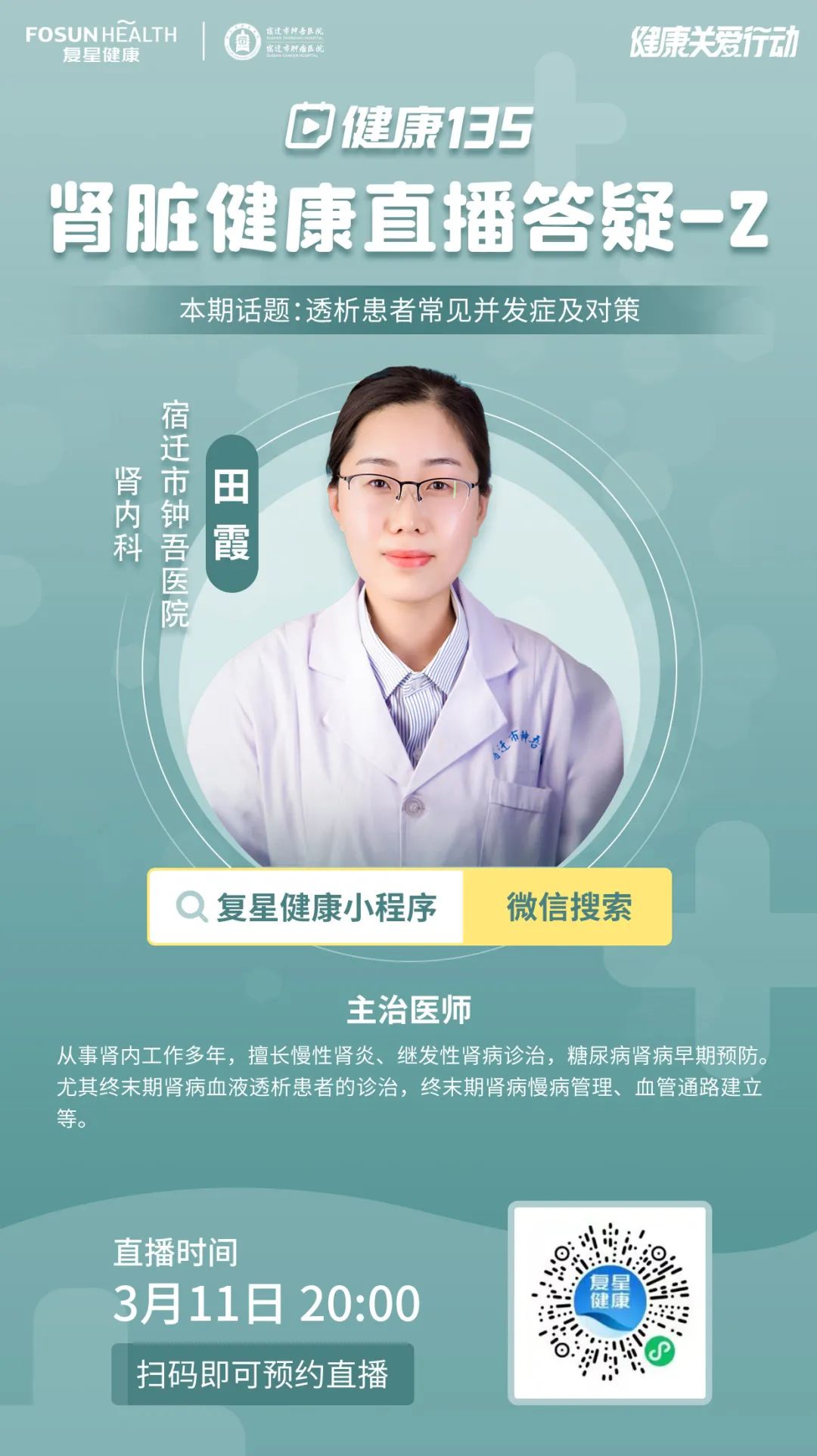 【直播預(yù)告】透析患者常見并發(fā)癥如何應(yīng)對?3月11日宿遷市鐘吾